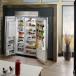 You will be charmed by the many interesting features and modern look of this KitchenAid 48-inch side-by-side refrigerator with stainless steel finish! The ExtendFresh temperature management system uses a sensor to optimize both refrigerator and freezer temperatures, maximizing food shelf life. The FreshFlow produce preserver absorbs the ethylene gas produced by many fruits and vegetables to slow down the ripening process. Progressive LED lighting gives you a clear idea of what's in your refrigerator without dazzling you. The drawers are equipped with ball-bearing slides allowing easy opening and closing, even when they are entirely filled. Adjustable glass shelves feature nano-etched edges and a finely textured surface that helps contain spilled liquids, maximizing space while making cleaning easier. Lastly, this appliance comes with the FIT limited guarantee, ensuring that the built-in refrigerator will fit perfectly with your existing cabinet cutout of a standard comparable built-in refrigerator model. Otherwise, KitchenAid will provide up to $300 for a cabinet adjustment.