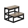 Keep it safe for those out of reach spots with the help of this practical and stylish 2 step stool. With a portable and compact design, this practical step ladder can have a permanent spot in the kitchen, bedroom and bathroom to help reach those high shelves and cabinets, or when you need an extra boost to safely get into a high bed. The two wide steps have an attractive wood-look taupe brown laminate finish, supported with sturdy black metal framing that includes floor protectors, giving the step stool a contemporary appeal. Easy to assemble with illustrated instructions and hardware included, this step ladder will be ready to use in no time flat. It includes a 5 year limited warranty against manufacturer's defects for your peace of mind. Make this handy and reliable accent stool a part of your permanent home furnishings!