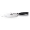 - 7-in (18cm) all-purpose Santoku knife with contour handle for superior grip and balance