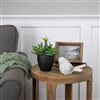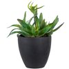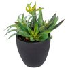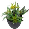 Don't let your brown thumb hold you back. Show off your love of plants with this beautiful artificial succulent. Held in a lovely base with faux dirt for a realistic look. Easily maintained this artificial succulent is perfect for your home or office. Product Features. Features three types of succulents. It comes in a decorative shiny black round pot. Recommended for in Door use only—if using outdoors place under a covered area. Dimensions: 11-in H x 9.25-in W x 7-in D. Material(s): plastic/ceramic/foam