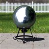 Thought to attract fairies and magical beings gazing balls have been making gardens beautiful since the 13th century. This versatile piece is the perfect way to add style and charm to your garden. Pair with a stand or statue for a bright pop of colour. Product Features: Silver mirrored garden gazing ball. Can be filled with lights for an added touch of flair. Recommended for both indoor and outdoor use Dimensions: 10" diameter. Material(s): glass . Note: stand not included