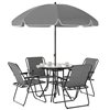 Outsunny 6-Piece Grey Metal Frame Folding Patio Dining Set w/ Umbrella