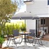 Simple, stylish outdoor garden furniture for relaxing or dining with this Outsunny outdoor furniture set. The backyard furniture set comes with a round table and four folding chairs: plenty of room for you and company. The powder-coated steel frames mean the patio table and chairs are strong and robust. Folding chairs feature breathable mesh seats for cool comfort. This small patio furniture is complete with a parasol to shade and protect you safely.