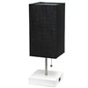 Simple Designs 14.25-in White Incandescent Pull-Chain Standard Table Lamp with Black Fabric Shade