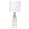 A repeating ripple pattern is the key element to this beautifully designed table lamp. A painted ceramic base is paired with a matching fabric shade to easily incorporate this lamp to your space. This versatile lamp is ideal for the nightstand in your bedroom, your office desk, and even your entryway table!