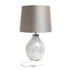 They say pearls go with everything, so this table lamp is sure to be the perfect addition to complete your lighting needs! This light is built with a beautiful textured iridescent pearl base, and a silk-like light brown/dark champagne fabric shade. Simplicity mixed with modern, leaves a timeless impression suitable for all room types.