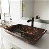 Handmade from solid tempered glass, the Vigo® Rectangular Brown and Gold Fusion Glass Vessel Bathroom Sink is ideal for everyday use. The polished interior and textured exterior are stain-resistant and easy to clean. Tones of brown with rich gold accents shining through create an opulently designed bathroom sink, which will make any bathroom feel like a lavish sanctuary.