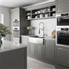 - Single hole kitchen faucet and farmhouse-style apron front sink create a modern look