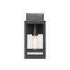 The Nuri 1-light outdoor wall sconce offers defining qualities with a linear frame made of steel with a matte black finish and a clear glass shade.