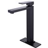 This is a tall faucet for bathroom vessel sink, with a beautiful matte black finish, giving your bathroom a modern look. It comes with 6-inch cover plate, fit for 1 or 3 hole 4 inch sinks.