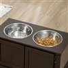 PawHut Dark Brown Dog Feeder with 2 Stainless Steel Bowl