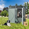 Built for strength, stability and year-round protection, this galvanized steel shed is designed to withstand Canada’s toughest weather. Rust- and UV-resistant steel panels offer long-lasting durability, while the sloped roof design prevents snow and rain buildup for added safety. Built-in vents provide ventilation to keep the shed fresh and dry, and smooth sliding doors with a secure padlock offer easy access and extra protection. With pre-cut, pre-drilled parts and clear instructions, assembly is simple and stress-free—even for first-time builders.