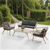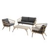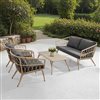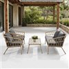 Transform your outdoor space into a bohemian haven with the Minori conversation set, combining timeless elegance and premium quality. Made from high-quality synthetic wicker, this set is designed to withstand the outdoor elements while providing unmatched comfort. The cushions, covered in weather-resistant fabrics, not only ensure comfortable seating, but exceptional durability, allowing you to enjoy your furniture year after year. Inspired by the bohemian style, this conversation set is distinguished by its clean lines and relaxed style. The earthy tones of the rattan blend harmoniously with the neutral-toned cushions, creating a warm and welcoming atmosphere. Each element of this set has been carefully selected to ensure maximum longevity while reducing unecessary maintenance.