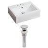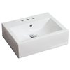 It features a rectangle shape. This vessel set is designed to be installed as a wall mount vessel set. It is constructed with ceramic and it comes with an enamel glaze finish in white colour. It is designed for a 3h4-in. faucet.