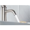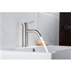 Add a splash of contemporary style and modern elegance to your bathroom with this single hole bathroom faucet. The faucet's clean lines, and brushed chrome finish provide a refined, elegant look. The unique spout delivers a smooth ribbon of cascading water, controlled by an easily adjustable 1-handle lever that was designed to adapt to your needs.