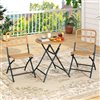 Elevate your outdoor relaxation with this stylish 3-piece folding bistro set, expertly crafted for lasting comfort and durability. Featuring hand-woven PE rattan seats and tabletop that resist sun damage, the dining set combines natural elegance with practical design. The sturdy metal frame ensures reinforced support and long-term use, while folding design brings you more convenience. Perfect for backyard, balcony, or poolside, this well-made patio bistro set effortlessly blends beauty and functionality to enhance any outdoor space.