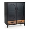 Do you need a practical & chic storage cabinet to keep your dining room well-organized? Look our industrial buffet sideboard! It has a 2-tier storage cabinet and 2 deep drawers that can sort and hide a variety of sundries. Besides, the spacious countertop is ideal for displaying your favorite ornaments, photo frames and vases. Thus, the cabinet can be used as a buffet sideboard, display cabinet, storage cabinet according to your different needs. The industrial appearance and corrugated tempered glass doors make it stylish and eye-catching. Besides, tough and rustproof steel frame ensures long-lasting service life.