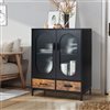 Costway Black Kitchen Storage Cabinet Freestanding Buffet Sideboard Glass Doors and Drawers