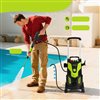 This high‑efficiency electric pressure washer delivers powerful cleaning performance with a 1900W motor, up to 2300 PSI, and a maximum flow rate of 1.8 GPM. Equipped with a foam spray and four quick‑connect nozzles, it adapts easily to various cleaning tasks. The long power cord and high‑pressure hose provide extended reach, while lockable wheels and a telescopic handle ensure easy mobility and stability. Designed for safety and durability, it features overheat protection, Total Stop System (TSS), an IPX5 waterproof rating, and a safety lock. Multiple self‑priming options, integrated storage hooks, and practical accessories make setup, operation, and storage simple and organized.
