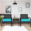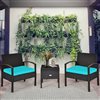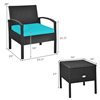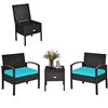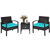 Costway Rattan Frame Patio Conversation Set with Blue Cushions Included - 3-Piece