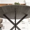 - Rustic wood-look top and black cross legs exude an industrial charm