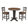 International Concepts 36-in Solid Wood Round Extension Dining Table w/ 2 Counter Height Stools - Hickory/Washed Coal