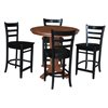 International Concepts 36-in Solid Wood Round Extension Dining Table w/ 4 Counter Height Stools - Distressed Oak/Black