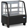 Easily increase impulse sales at your bakery, coffee shop, restaurant, or convenience store with this sleek brightly lit countertop display refrigerator. Just because you don't have a lot of space doesn't mean you need to compromise. Showcase your most eye-pleasing snacks, cheesecakes, pies, and all kinds of whipped desserts at the checkout counter. Bright LED lighting on both sides and a curved double pane front glass will attract the customer's attention. Automatic defrost feature and digital temperature control and display, ensure consistent temperature and keep food fresh. Two adjustable and removable wire shelves provide ample space for all your goodies. The rear sliding door allows staff to load the cooler efficiently. Features: Beautiful LED lighting, digital temperature controls, space-saving countertop design, two adjustable shelves, four-sided double glass for durability and insulation. Front curved glass, rear sliding glass doors, bottom-mounted compressor and ventilated cooling system.