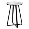 - Bring a modern tone to your living room, office space, family room or den with this stylish white marble-look/black metal round top end table