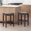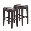 Enjoy a home cooked meal with comfortable seating in any dining setting. Featuring a sleek H-frame base and saddle seat, this set of counterstool offers a delightfully refined look to any home. These stools are finished with a stunning silver studded trim that brings an extra boost of design to your interior space.