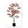 Capture the essence of autumn year-round with our artificial fall dogwood tree. This piece brings the warm, rust colour hues of fall right into your home with its stunning array of leaves. The leaves, reminiscent of a crisp autumn day, are displayed on a gracefully curving trunk, showing off nature fts asymmetrical perfection. With a height of 3.5 ft, this faux maple tree fits comfortably in a cozy corner or alongside your favourite reading chair. It fts housed in a black nursery planter, allowing you to DIY in your favourite decorative pot. Add this charming tree to your space for an instant splash of fall fts splendour. Great for Halloween, Thanksgiving and harvest parties.