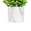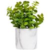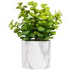 Bring natural charm to your space with this artificial private plant set in a sleek faux marble plastic pot. The lifelike greenery requires no upkeep making it perfect for busy lifestyles. Its contemporary pot design adds a stylish touch to any room while the durable materials ensure long-lasting beauty. Perfect for desks shelves or entryways. Product Features: Artificial private plant in a pot. Nestled inside a faux marble plastic pot. Pot is accented with faux dirt and stone. Recommended for use in Doors only—if using outdoor keep in a covered area. Overall dimensions: 8.5-in H x 6.25-in W x 5.5-in D. Pot dimensions: 3.5-in high x 3.75-in diameter. Material(s): plastic