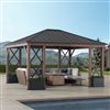 Sunjoy 13 x 15-ft Black Galvanized Steel Aluminum Framed Hardtop Gazebo with Planters Shelves and Private Screen