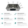 This handcrafted zero-radius corner (90-degree angle) undermount sink is made from premium 304 stainless steel with 18/10 chrome-nickel for outstanding durability and corrosion resistance. Featuring zero-radius corners and rear-positioned drain, it maximizes bowl capacity and cabinet storage space. Includes grid, undermount clips, installation template, and stainless steel strainer for easy, hassle-free installation.