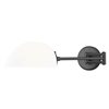 Bold contrasting tones are striking and stylish as this 1-light wall sconce offers function and fashion in one design. Matte black finish steel forms a structured frame with adjustability to direct lighting from side to side, as well as upward and downward by repositioning its shapely opal white glass hood shade. A superb choice for living rooms and home offices, this dimmable fixture fulfills a host of lighting objectives.
