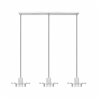 A softened geometric silhouette plays nicely in a set of linear pendants, offering a mix of old and new aesthetics perfect for casual settings. Brushed nickel finish steel construction creates a simple luminaire with cylinders and a centre disk, as a bold black cable provides perfect contrast. Illuminate a counter, hall, or other linear space with dimmable LED lighting flowing through this three light fixture with frosted acrylic diffusers.
