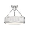 Fluted bands bring the perfect dose of personality and texture to this mid-century modern one-light semi-flush mount ceiling light. Perfect for a bedroom or breakfast nook, it offers bright style with a satin nickel finish and opaque diffuser for excellent illumination. This fixture is equipped with a Z-Lite EZ change LED module that offers energy efficiency, light colour selectability, and dimming capabilities.