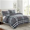 Marina Decoration 3-Piece Black and Grey Twin Plaid Print Bamboo Fitted Sheet Bedding Set