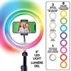 - Includes a USB power cord, an 8-in LED ring light, a cell phone holder, a large tripod, a large green screen sheet and a guide book