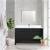 The 48-inch Scotty freestanding bathroom vanity effortlessly blends contemporary style with everyday practicality, making it an excellent option for spacious bathrooms. Its durable engineered stone countertop, paired with an under-mounted ceramic sink with overflow, offers both elegance and ease of maintenance. The standout high-gloss grey acrylic finish not only enhances the vanity’s sleek, modern appeal but also offers exceptional resistance to moisture, and fading, ensuring it stays beautiful for years to come. Four full-extension drawers, equipped with undermount soft-close slides and stoppers, provide quiet and secure functionality, while polished chrome handles add a refined touch. The Scotty Vanity is an ideal choice for those seeking a stylish, long-lasting, and functional upgrade to their bathroom.