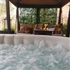 - Round hot tub with 210 gallon water capacity; holds up to 4 people