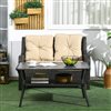 Outsunny Black Rattan Outdoor Coffee Table with 2-Layer Storage Shelf