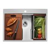 - Built-in colander, cutting board and folding rack slide on the integrated tracks in the sink