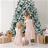 - Flocked Christmas tree with a large number of warm white lights