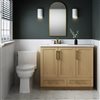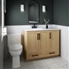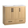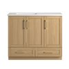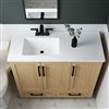 Introducing the Marien, a 42-in vanity with a stunning Sahara finish that adds a touch of sophistication to any bathroom. Choose between matte black or gold handles to match your décor. The white cultured marble integrated offset sink, designed with a 4-inch faucet drilling, enhances the vanity's modern appeal. The Marien offers ample storage with three slow-close doors, two regular-close drawers, and one regular-close interior drawer for a seamless experience.