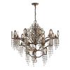 - Features a bronzed metal framework with clear crystal-style droplets