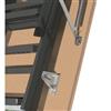 The Fakro LMS model is a heavy-duty, 350lb weight load capacity attic ladder. The ladder is made of powder-coated metal and folds close in three sections. The door is free from visible hardware once installed and can be painted to match any ceiling colour. A peripheral gasket lines the inside of the hatch frame and the door is insulated, creating a seal to reduce energy costs. The LMS includes plastic ladder ends, a lock, and an opening rod. Handrails, plastic ladder ends, finishing trim, and installation brackets are available accessories, sold separately. Fully assembled and ready to install. Rough opening 22.5 in x 47 in.