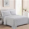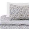Add a modern floral touch to your bedroom with this king-size sheet set featuring teal-yellow flowers and grey leaves on a crisp white background, with matching prints on all pillowcases. This set includes one flat sheet (105 x 102-in), one deep pocket fitted sheet (78 x 80 + 14-in) with full elastic that fits mattresses up to 16 inches, two pleated pillowcases, and two plain pillowcases (20 x 40-in). Made from an ultra-soft blend of 85% polyester and 15% bamboo rayon, the 120 GSM double-brushed fabric is breathable, wrinkle-resistant, prewashed, fade-resistant, hypoallergenic, and durable with no pilling. The smooth texture and breathable weave offer lasting comfort. Easy care: machine wash in cold water, tumble dry on low. Wash whites and colours separately. Do not use bleach on colours.