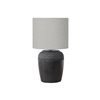 - This 17"h table lamp features a textured black ceramic base paired with a contemporary grey fabric shade, perfect for adding a fashionable touch to your living room, bedroom or home office decor