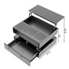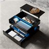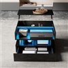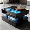 This modern coffee table features a glass top and a non-glass top that opens up to reveal an inner storage comparment. An app-controlled LED system provides soft light. A large bottom drawer provides lots of hidden storage space for remotes, magazine, board games, and knick-knacks. A high gloss black lacquered finish rounds out this stylishly functional coffee table that you'll love to have in your living room.